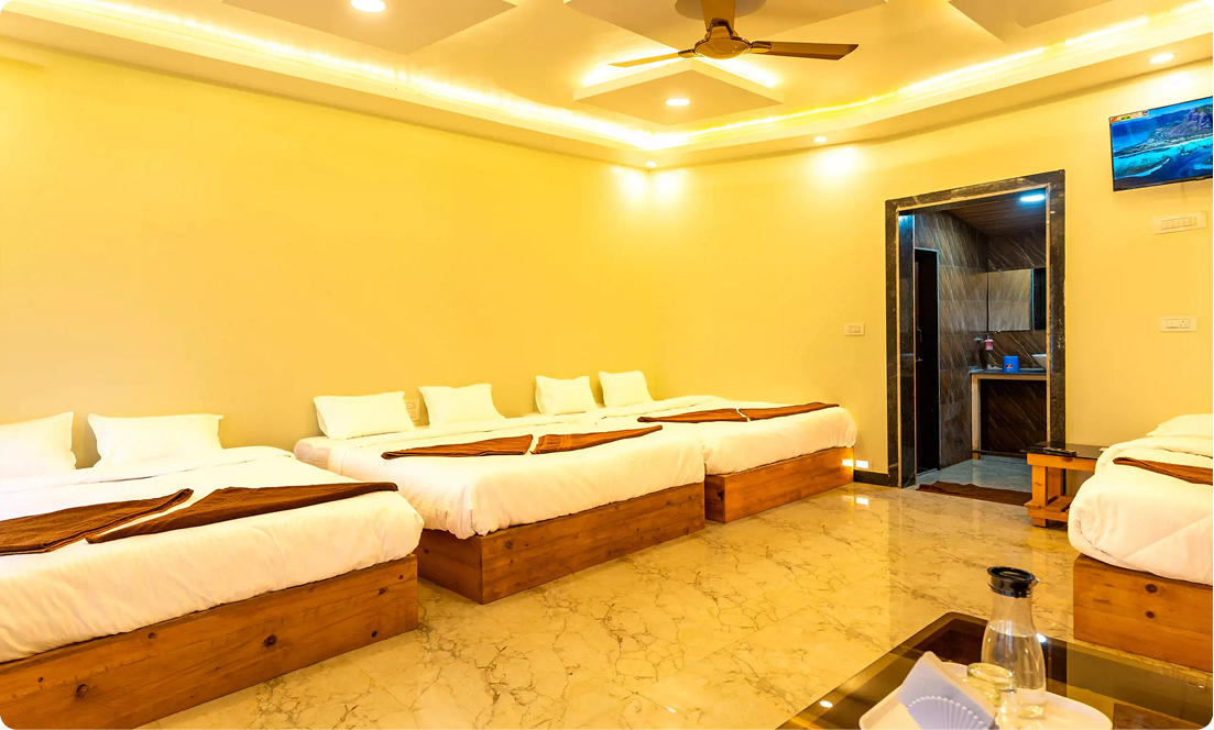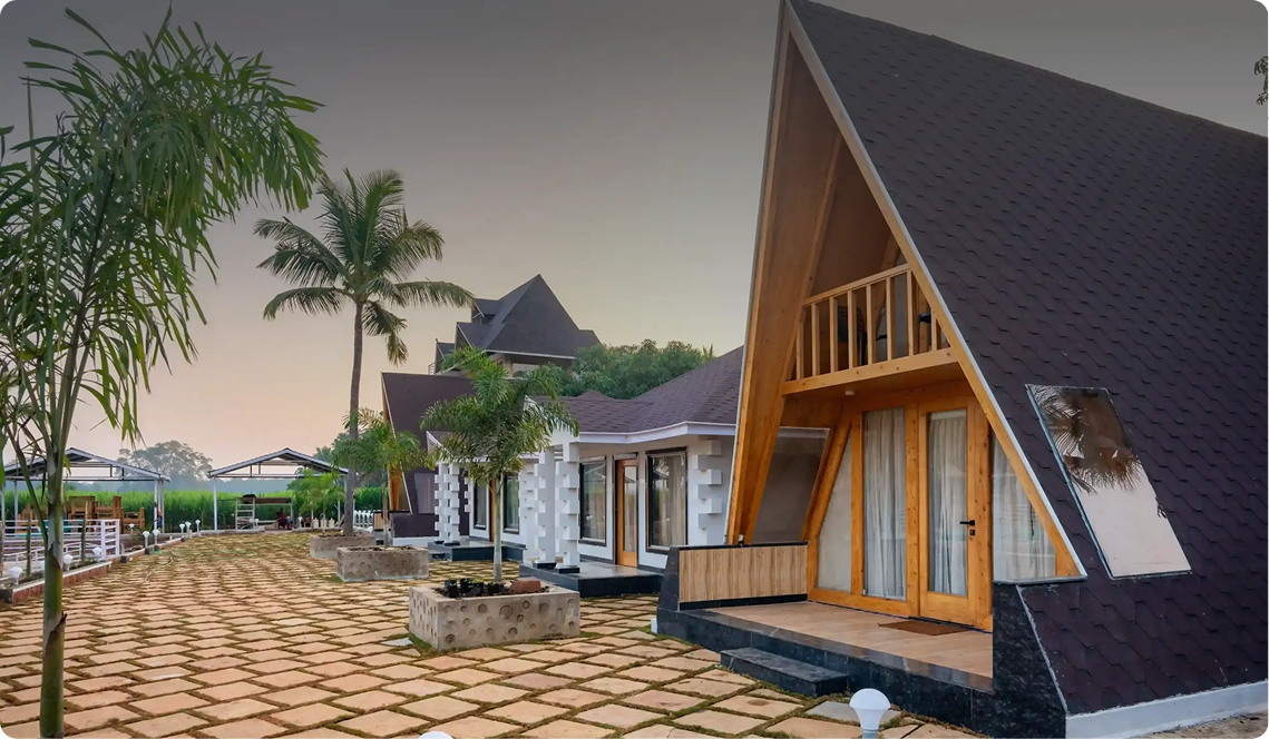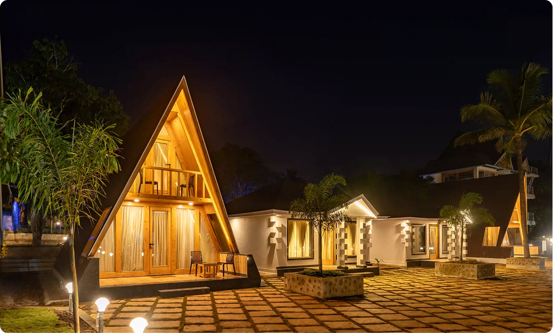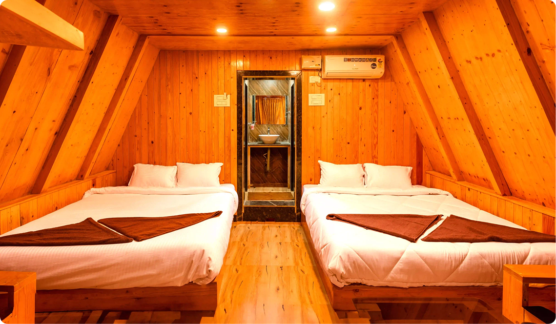 Discover the charm of Dandeli with our AC Deluxe Triangle Cottage at Rajhans Retreat Resort. Savor delectable meals, embark on thrilling outdoor adventures, and take in scenic sightseeing tours, all in one unforgettable journey. Our Dandeli Resorts offer comfort wrapped in unique triangular architecture, inviting you to unwind in style. Each stay blends modern amenities with nature’s serene backdrop for a truly immersive escape. Perfect for families or adrenaline seekers alike, our Dandeli Packages cater to every mood. From resorts to adventures, everything is within reach. Your extraordinary Dandeli experience starts here at Rajhans Retreat.